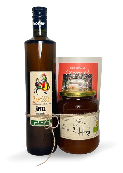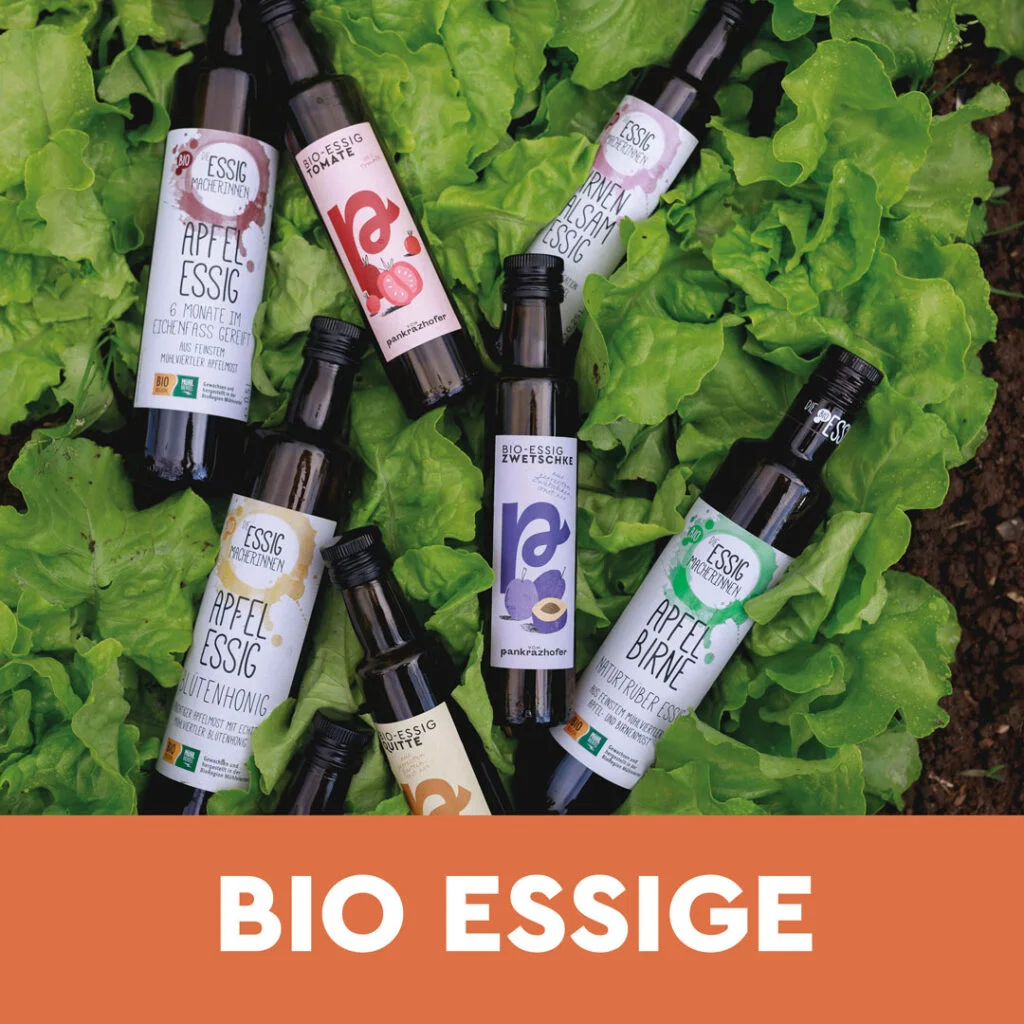 Der Anfang von echtem Gärungsessig liegt in echtem und hochwertigem Obst (oder Gemüse). Dieses wird gepresst, im ersten Gärverfahren zu Most vergoren und in einem zweiten Gärungsschritt zu Essig umgewandelt…