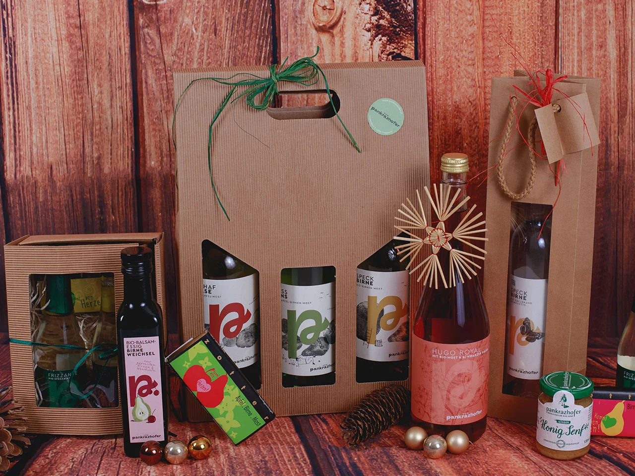 Saft, Most, Frizzante, Cider, Hugo, Brände, Getreide, Essig, Senf. Und wir ergänzen diese Produkte gerne mit Köstlichkeiten anderer Betriebe aus der BioRegion Mühlviertel. Regionale Bio Geschenke mit viel Wertschätzung für die Natur hergestellt.